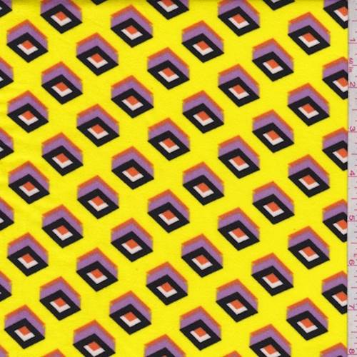 Lemon/Lilac/Orange Geo Cube Double Brushed Jersey Knit Fabric