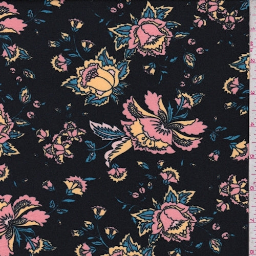 Midnight Navy Multi Stylized Small Floral Double Brushed Jersey Knit Fabric
