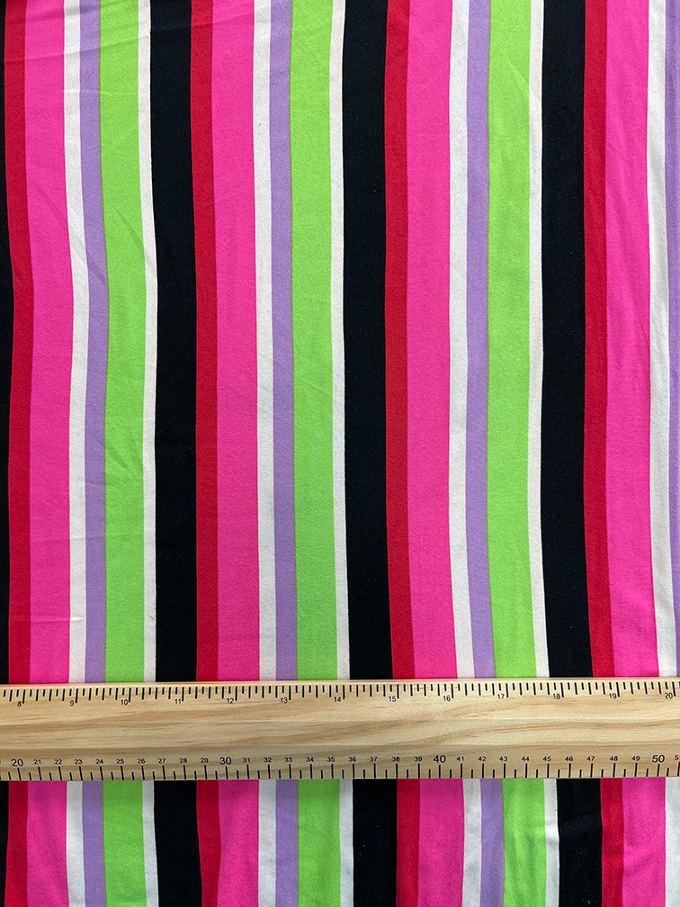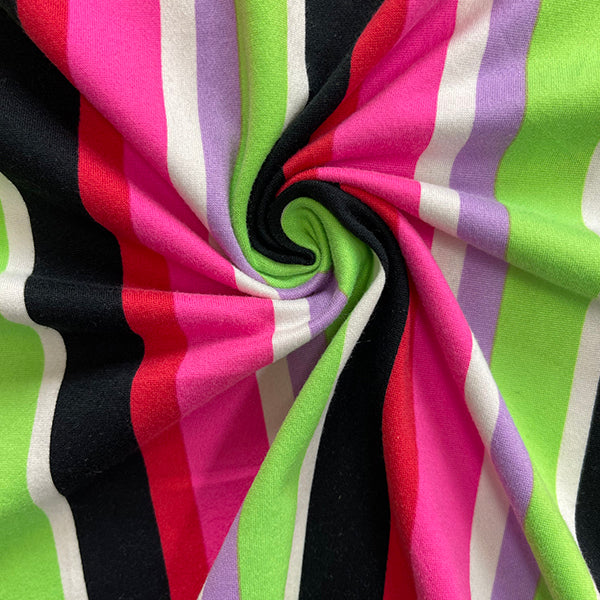 Neon Green Multi Print Stripe Double Brushed Knit Fabric