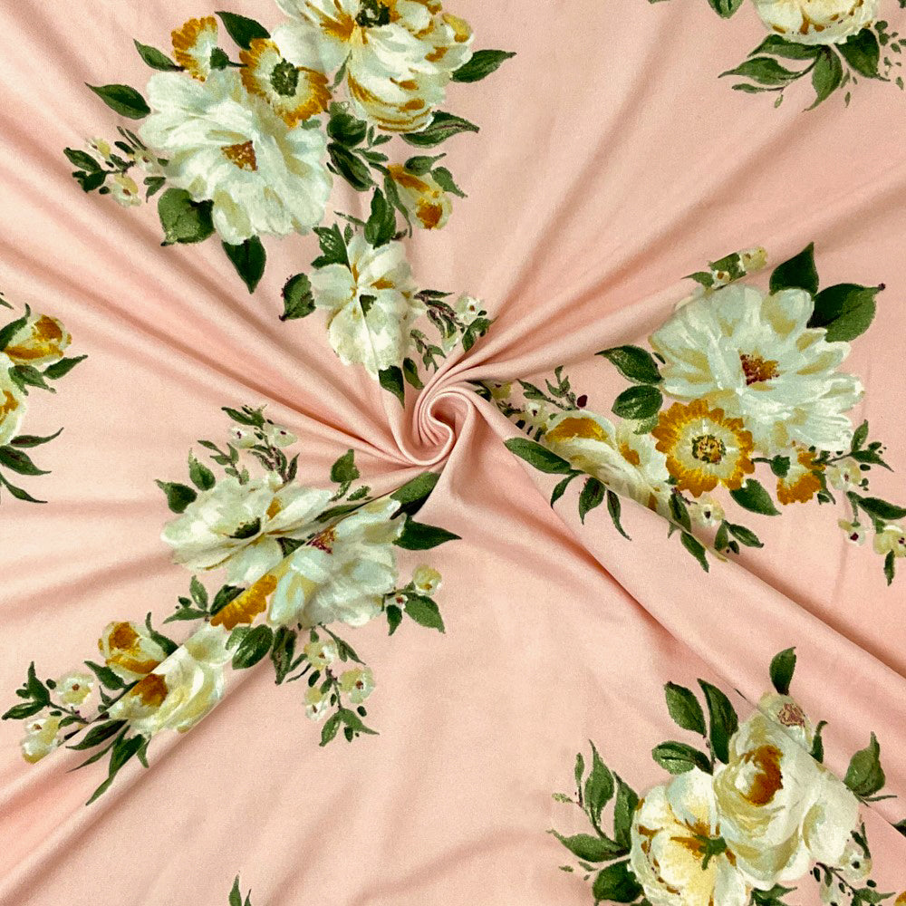 Pink-Multi Poly Spandex Stretch Floral Print DB Jersey Knit Fabric
