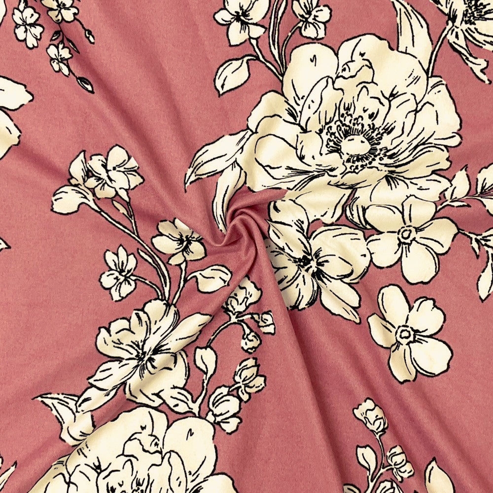 Pink-Multi Poly Spandex Stretch Floral Print Double Brush Jersey Knit Fabric