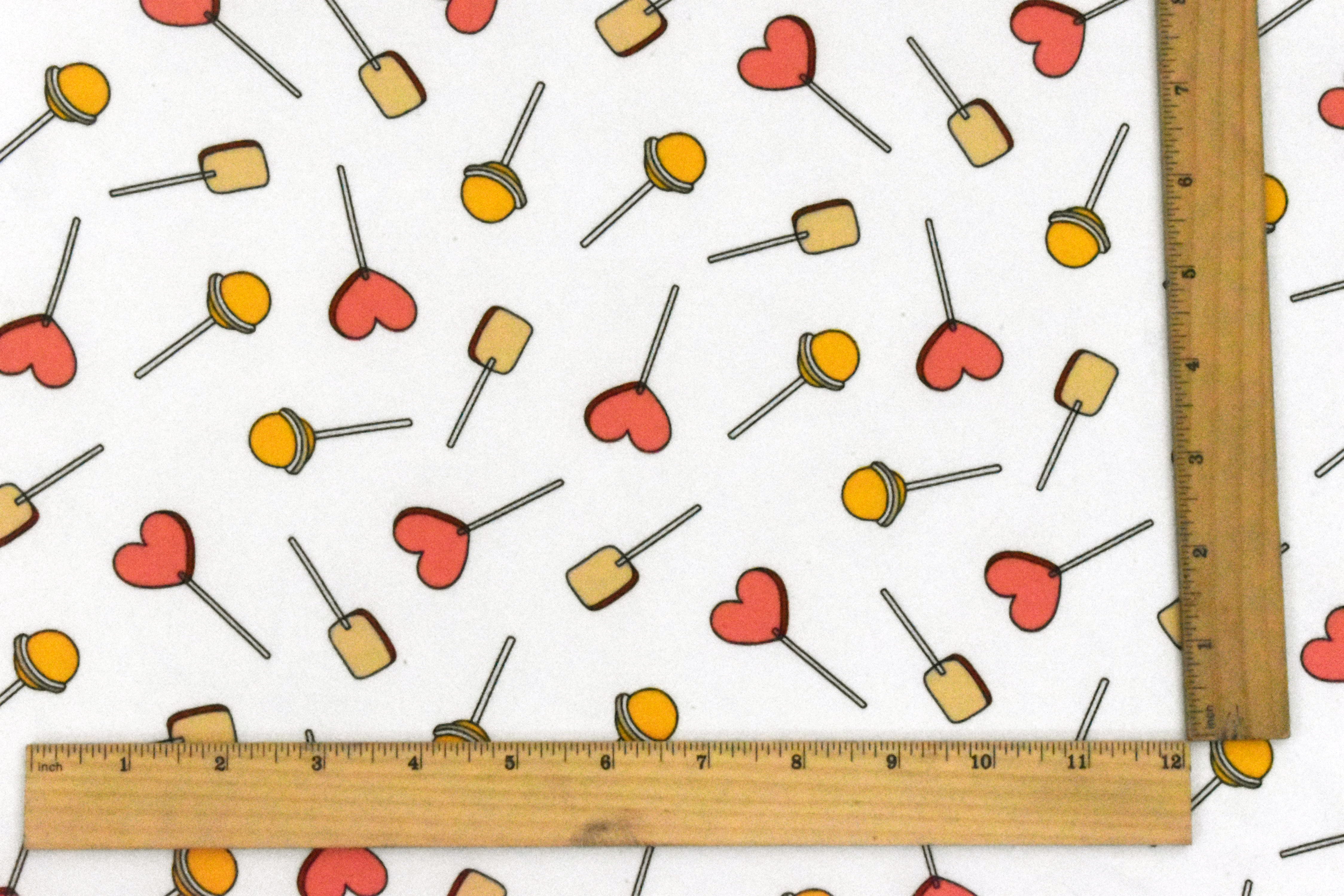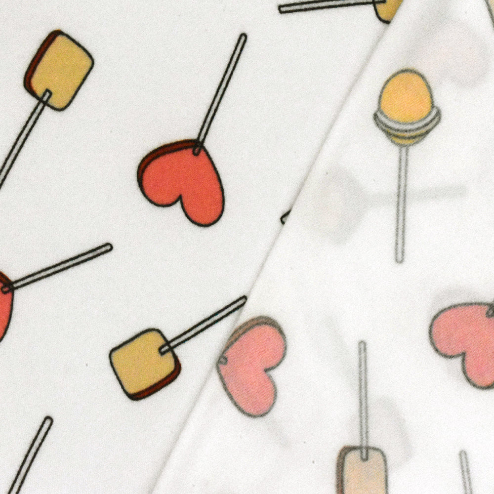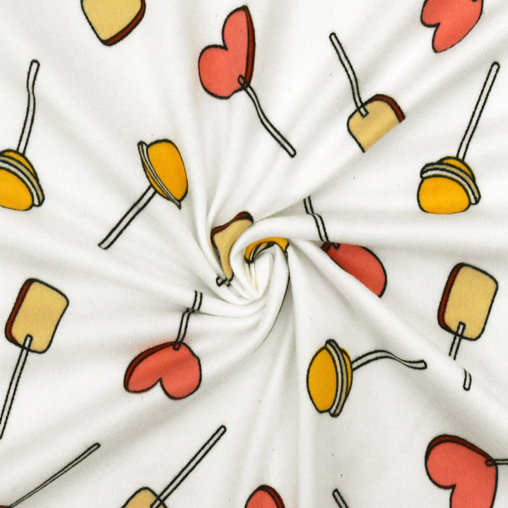 Snow White-Pink-Multi Lollipop Print Double Brushed Stretch Poly ITY Fabric