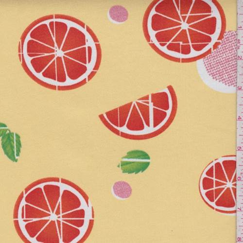 Soft Yellow Citrus Slice Double Brushed Jersey Knit Fabric