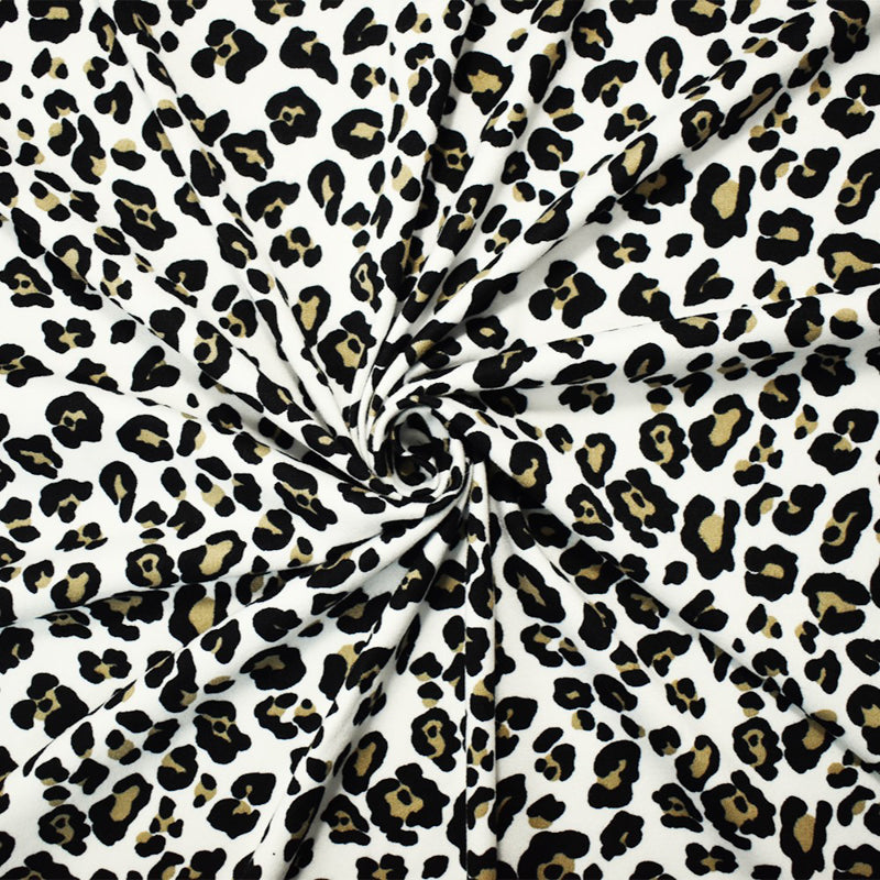 -White-Multi Poly Spandex Stretch Leopard Print Double Brush Jersey Knit Fabric