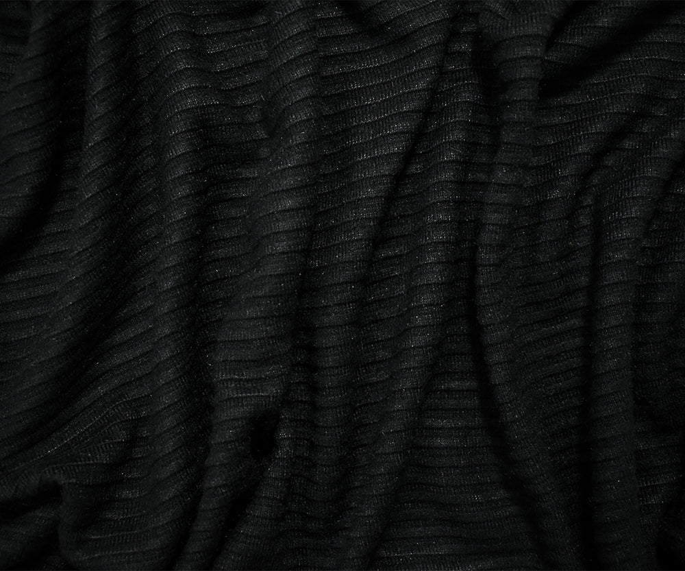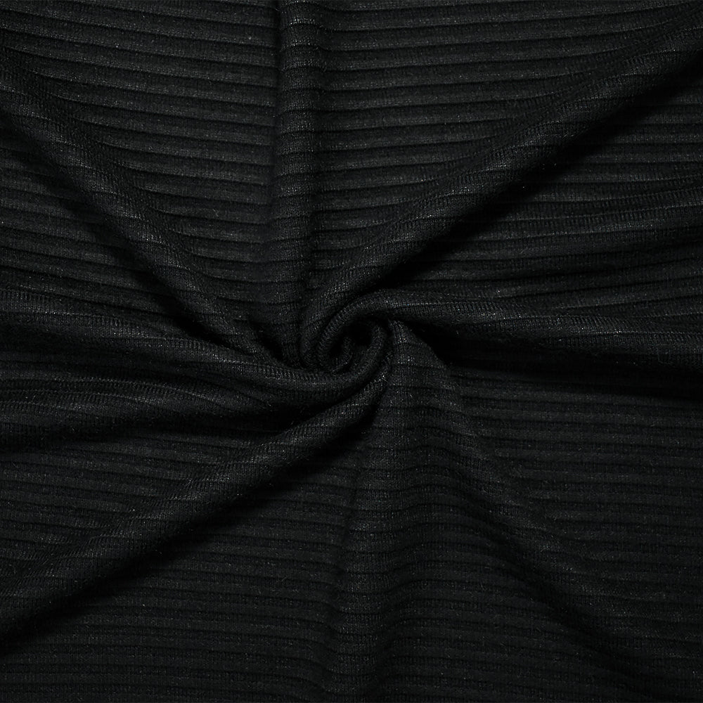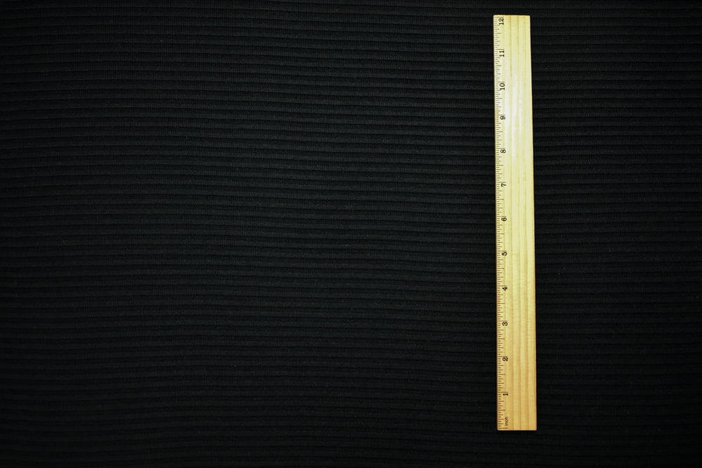 Black Cotton-Poly Horizontal Stripe Stretch Spandex Double Knit Fabric