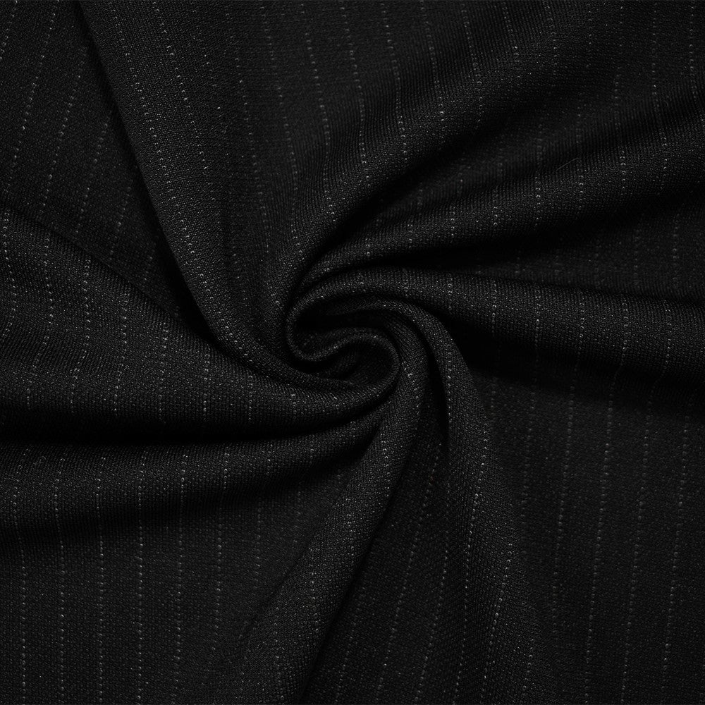 Black-Gray Poly Wool Spandex Stretch Stripe Double Knit Fabric