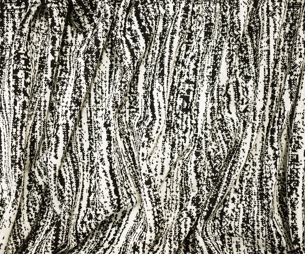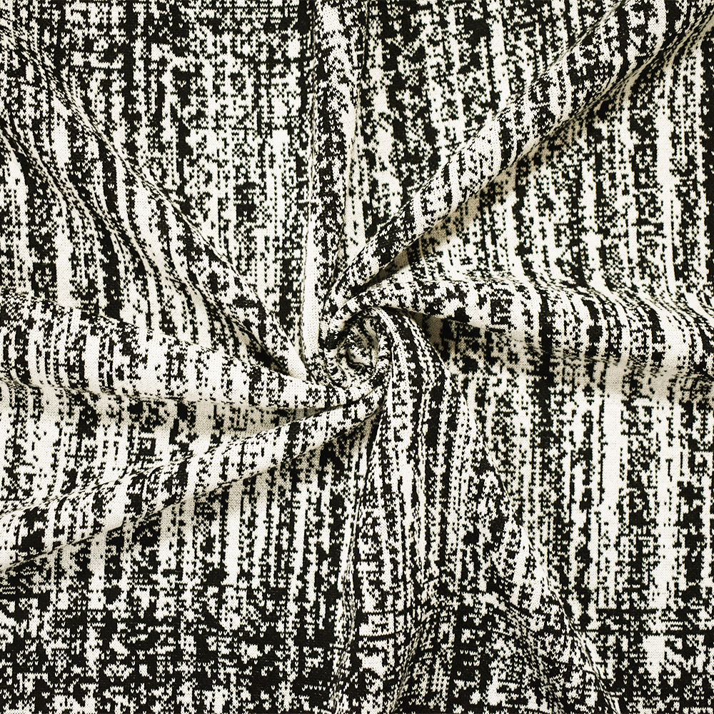 Black-White Poly-Cotton Stretch Spandex Abstract Double Knit Fabric