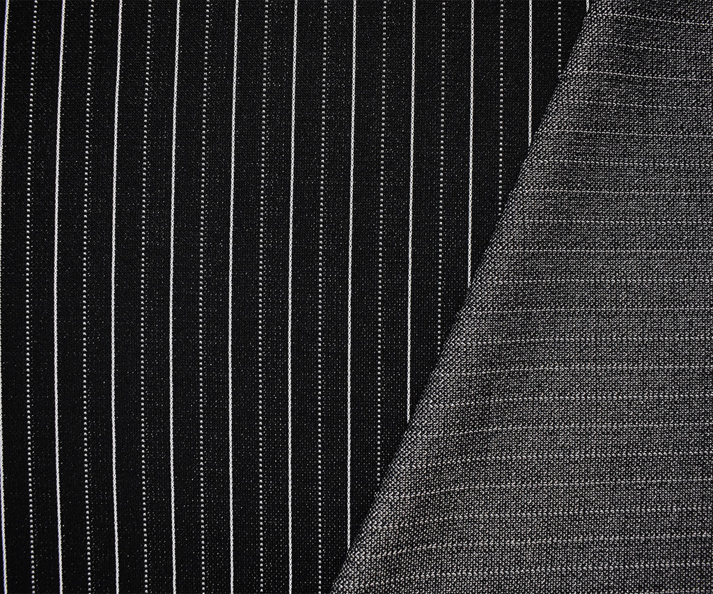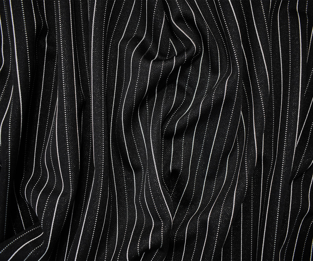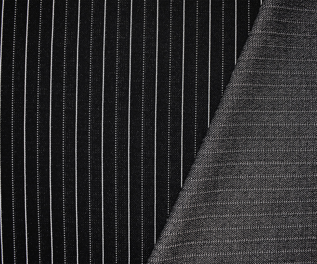 -Poly and wool blend double knit fabric with a vertical striped pattern.