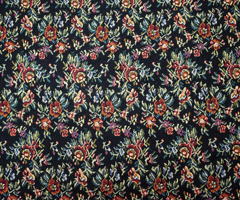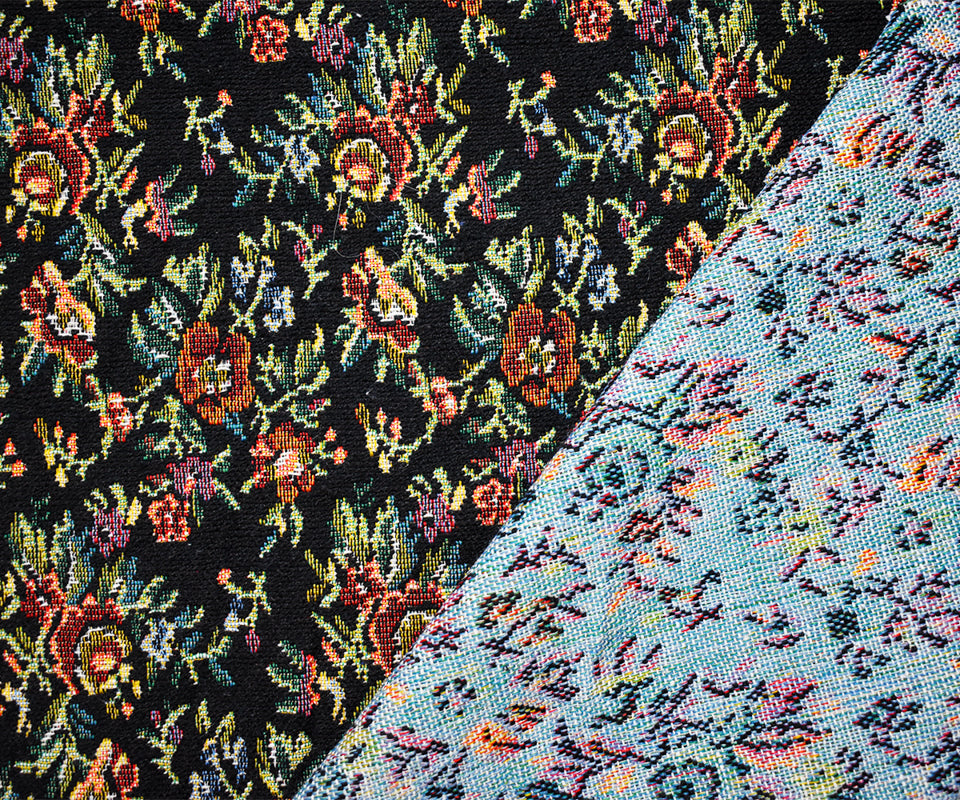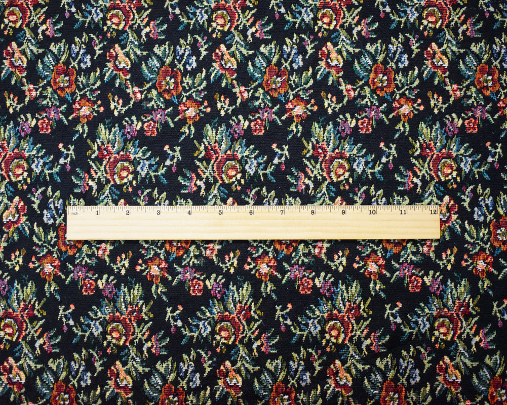 Black-Green-Multi Cotton Blend Floral Tapestry Woven Fabric