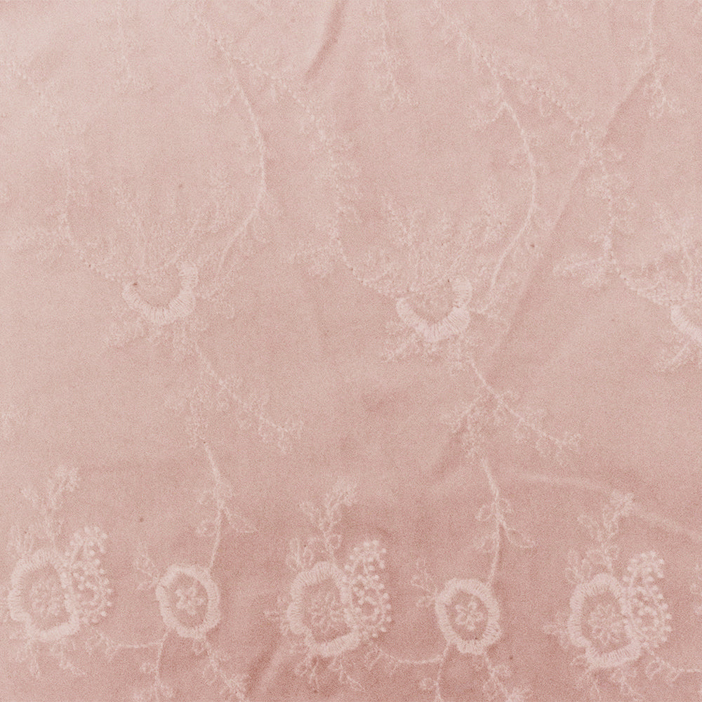Baby Pink Floral Embroidered Cotton Velveteen Woven Fabric