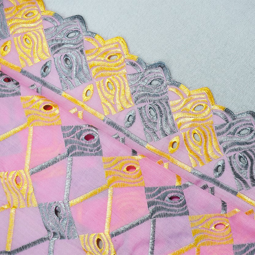 Pink-Multi Poly Embroidered Abstract Scallop Rhinestone Woven Fabric
