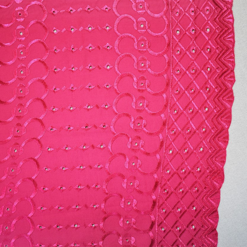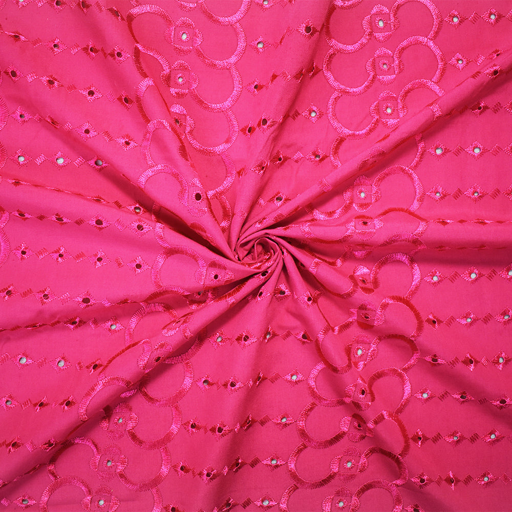 Pink Poly-Cotton Embroidered Abstract Eyelet Scallop Woven Fabric
