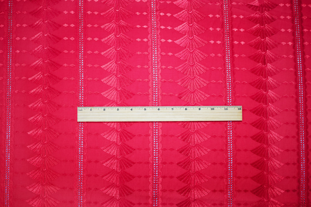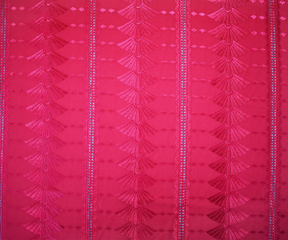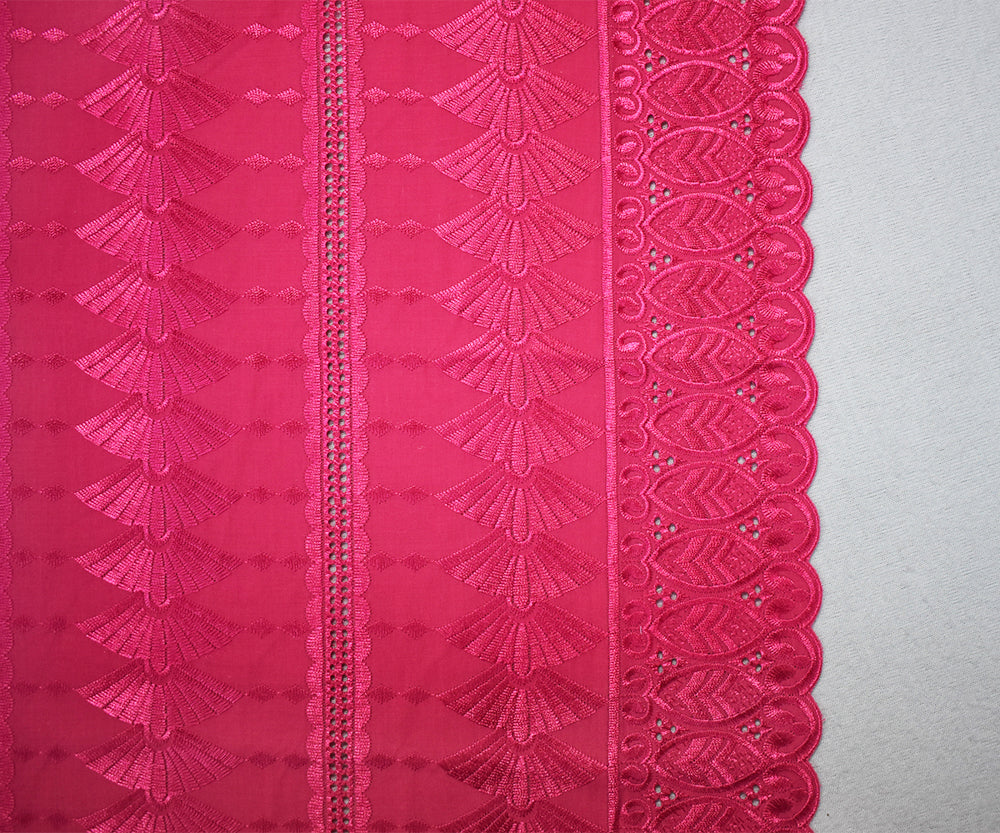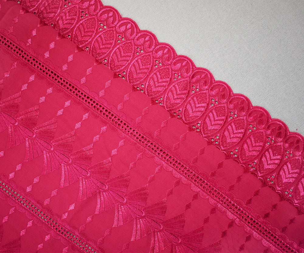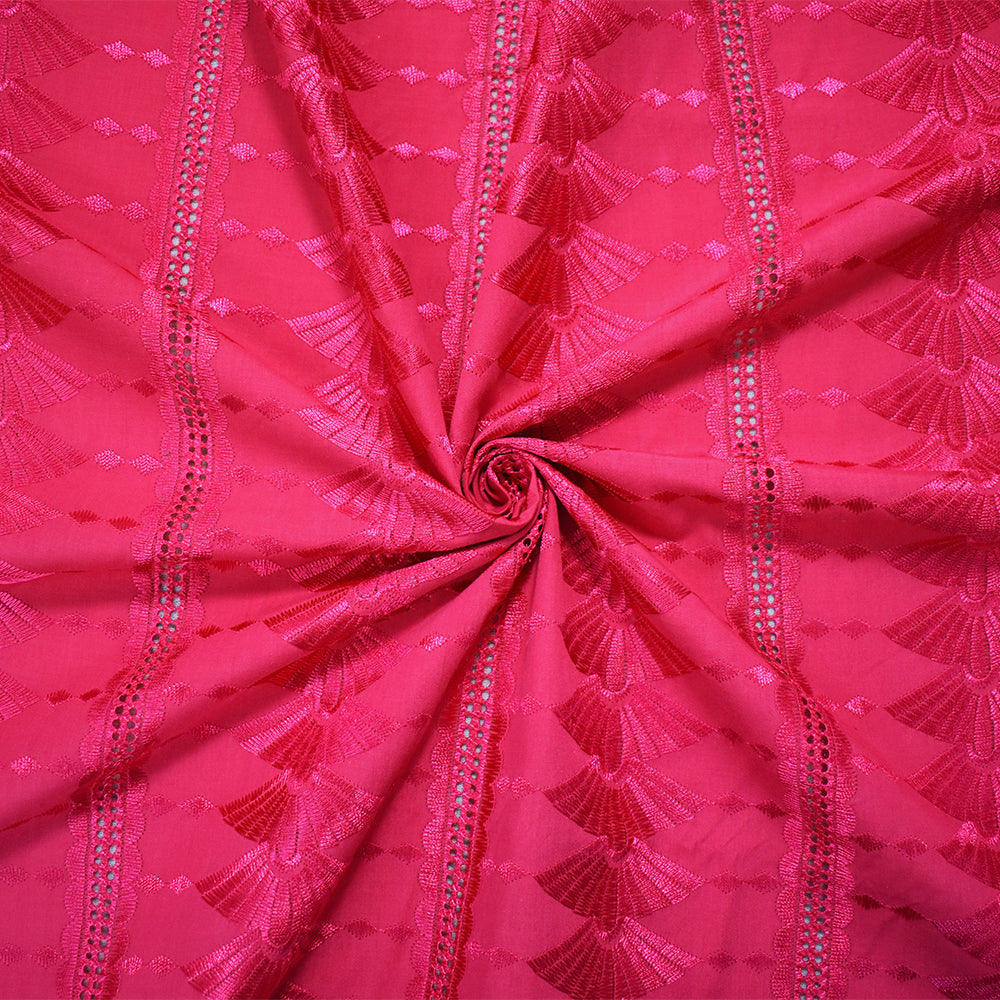 Pink Polyester Embroidered Fan Eyelet Scallop Woven Fabric