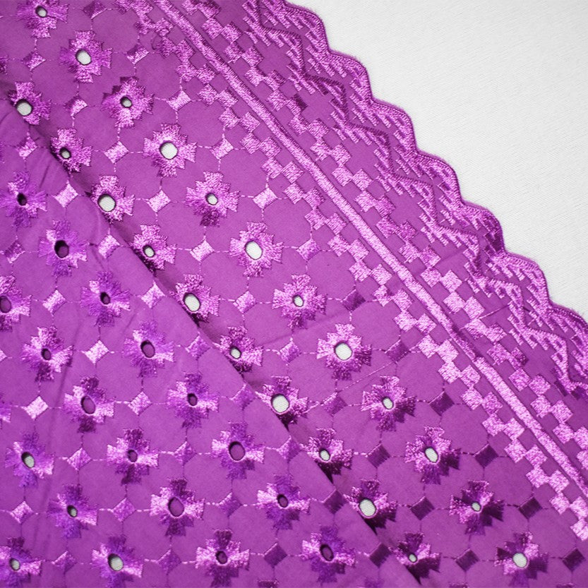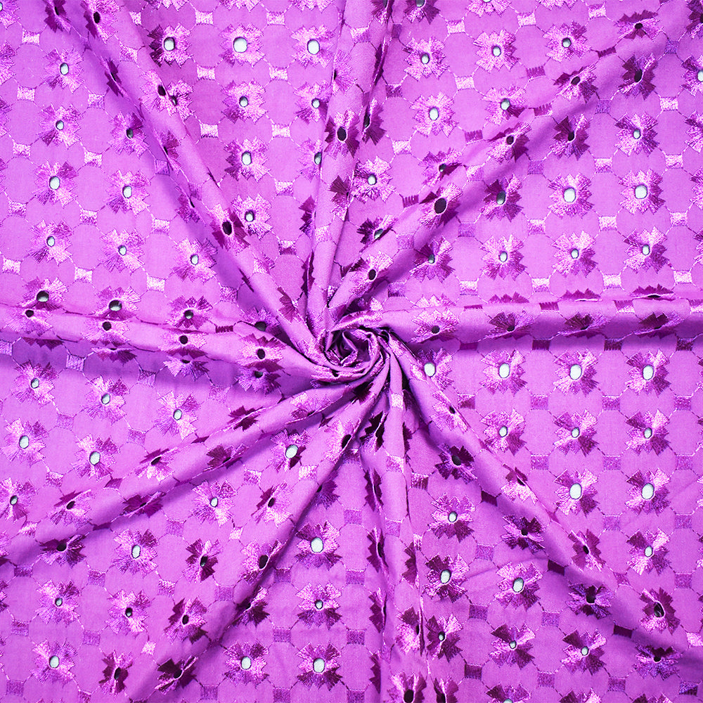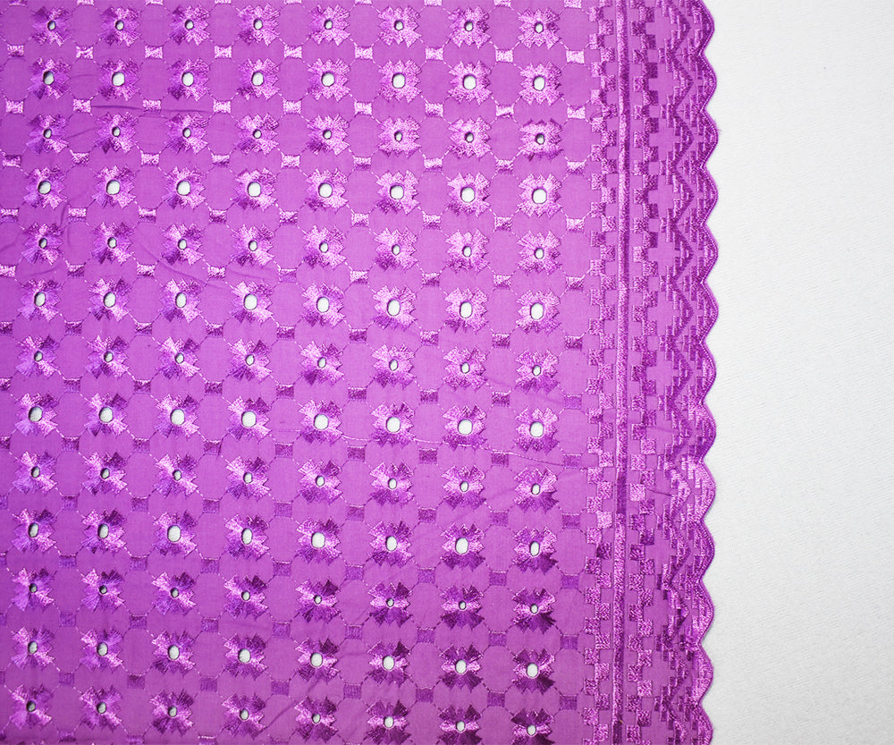 Purple Poly-Cotton Embroidered Geometric Pixel Scallop Woven Fabric