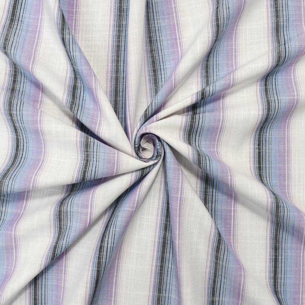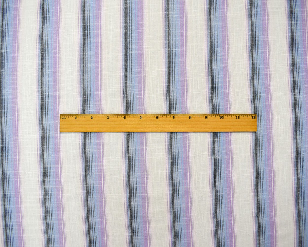 Ivory-Blue-Multi Cotton Famous Maker Vertical Stripe Slub Woven Fabric