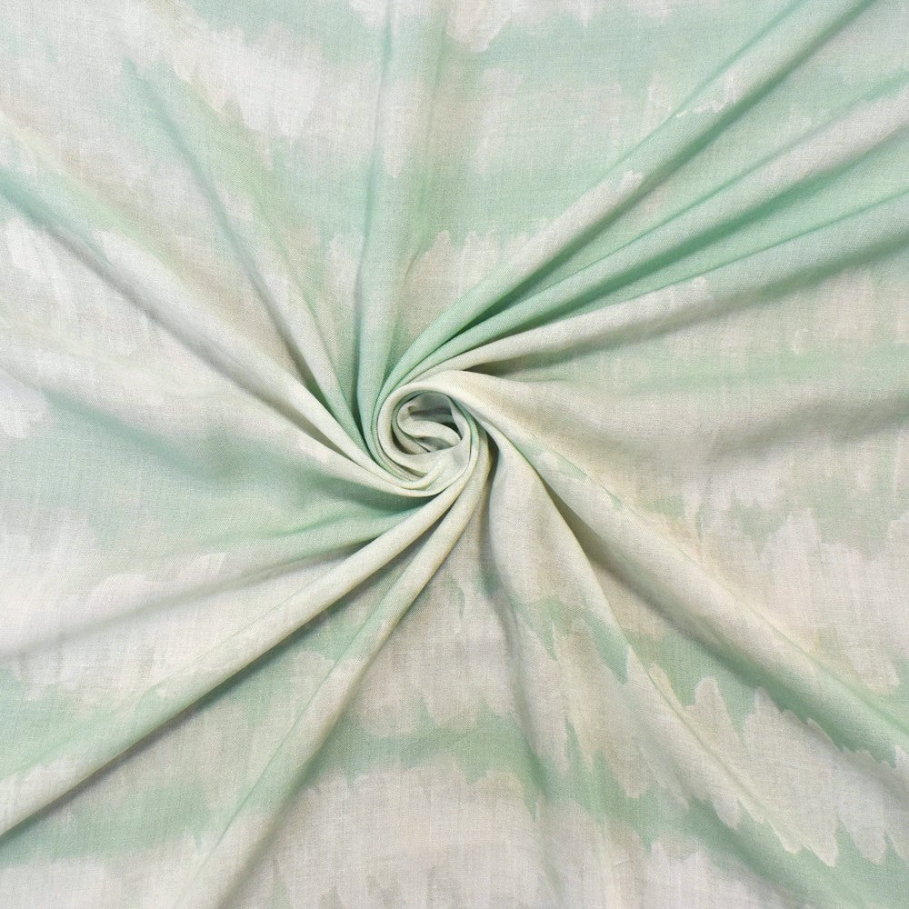 Ivory-Green Rayon Famous Maker Abstract Watercolor Print Lawn Woven Fabric
