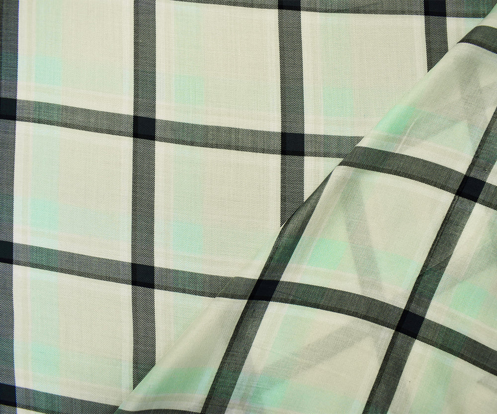 Ivory-Mint-Multi Rayon Famous Maker Plaid Twill Woven Fabric