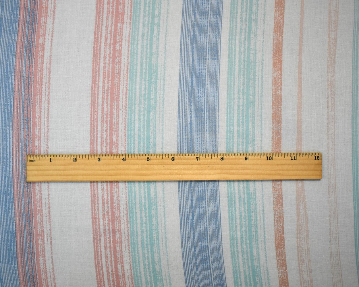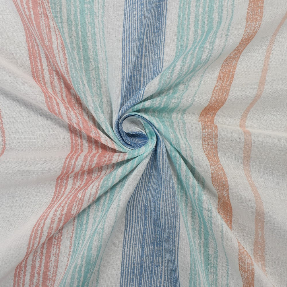 White-Peach-Blue Cotton Famous Maker Vertical Stripe Print Batiste Fabric