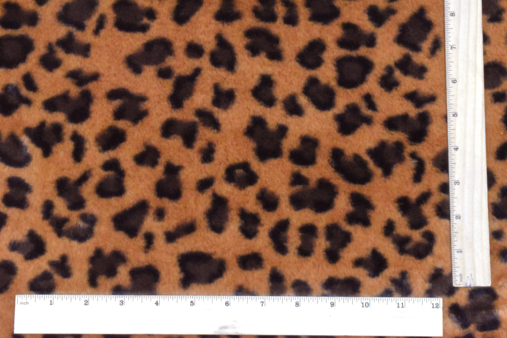 Earth Orange-Black-Brown Leopard Printed Faux Fur Stretch Knit Fabric