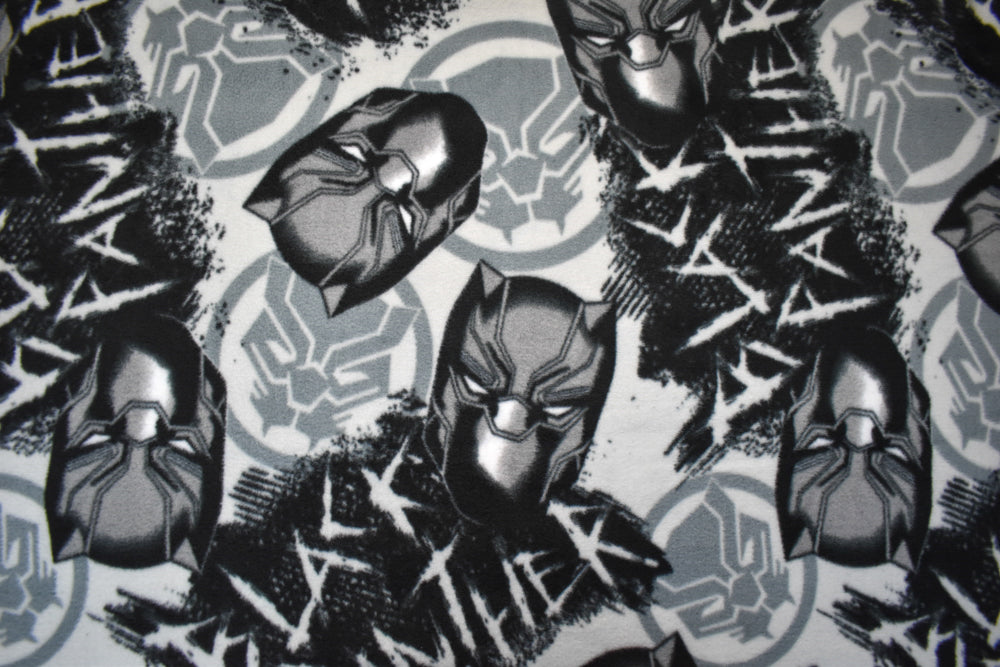 Gray-Multi Poly Marvel Black Panther Print Double Sided Fleece Knit Fabric