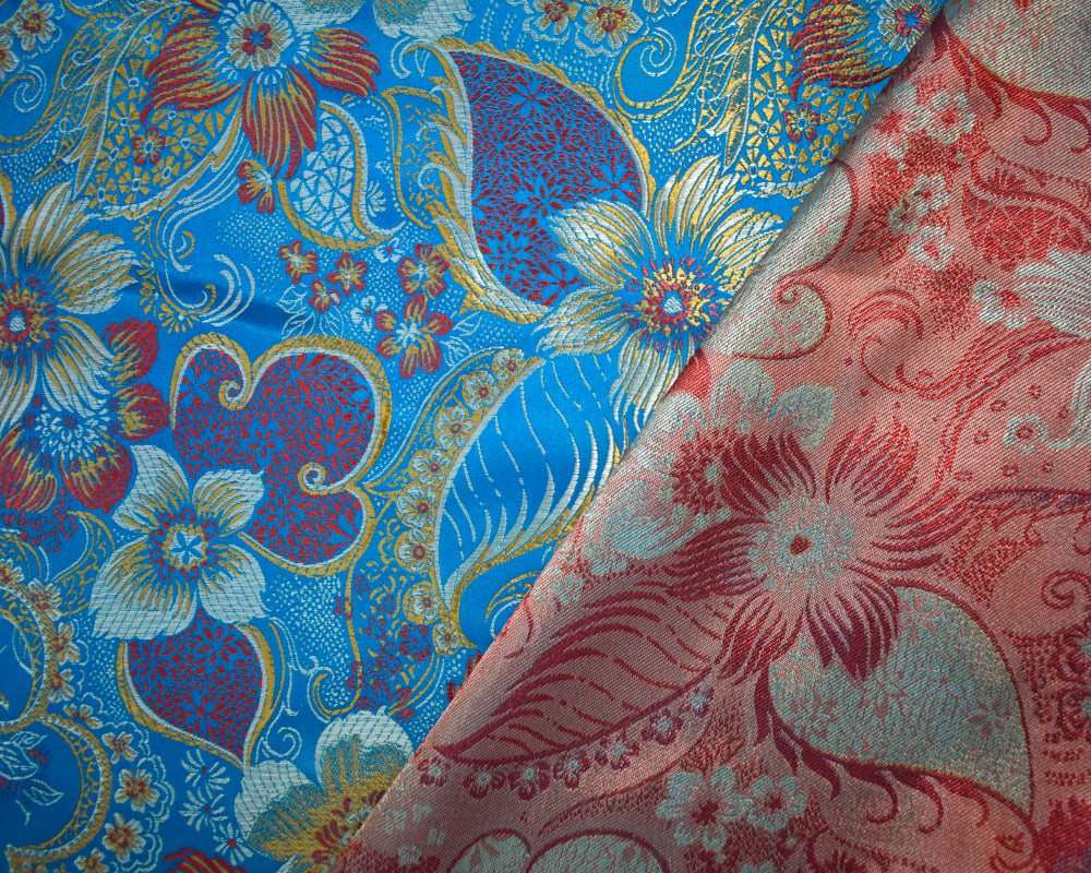 -100% Polyester Chinese brocade woven fabric with a floral pattern