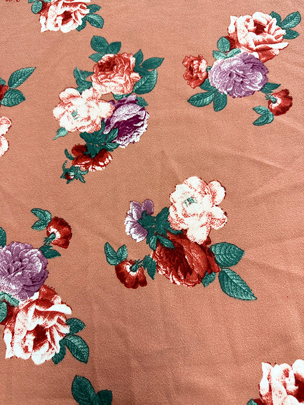 1 1/2 YD PC-Rose Multi Floral Scuba Crepe Stretch Knit Fabric