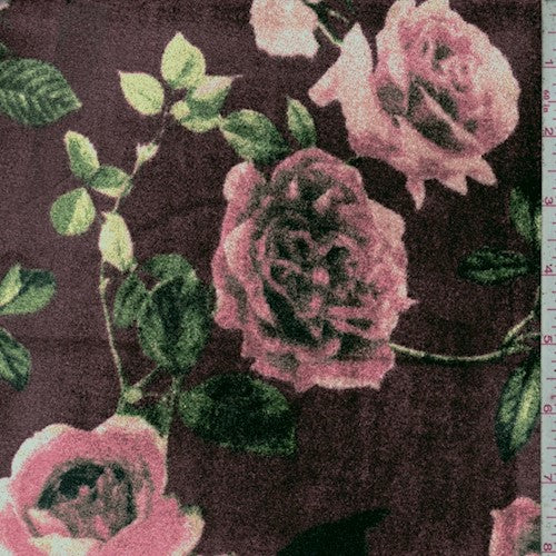 1 YD PC-Deep Wine/Multi Floral Printed Stretch Velvet Knit Fabric