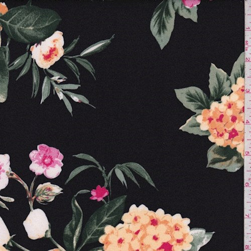 3 YD PC-Black/Apricot/Pink Floral Double Brushed Jersey Knit Fabric