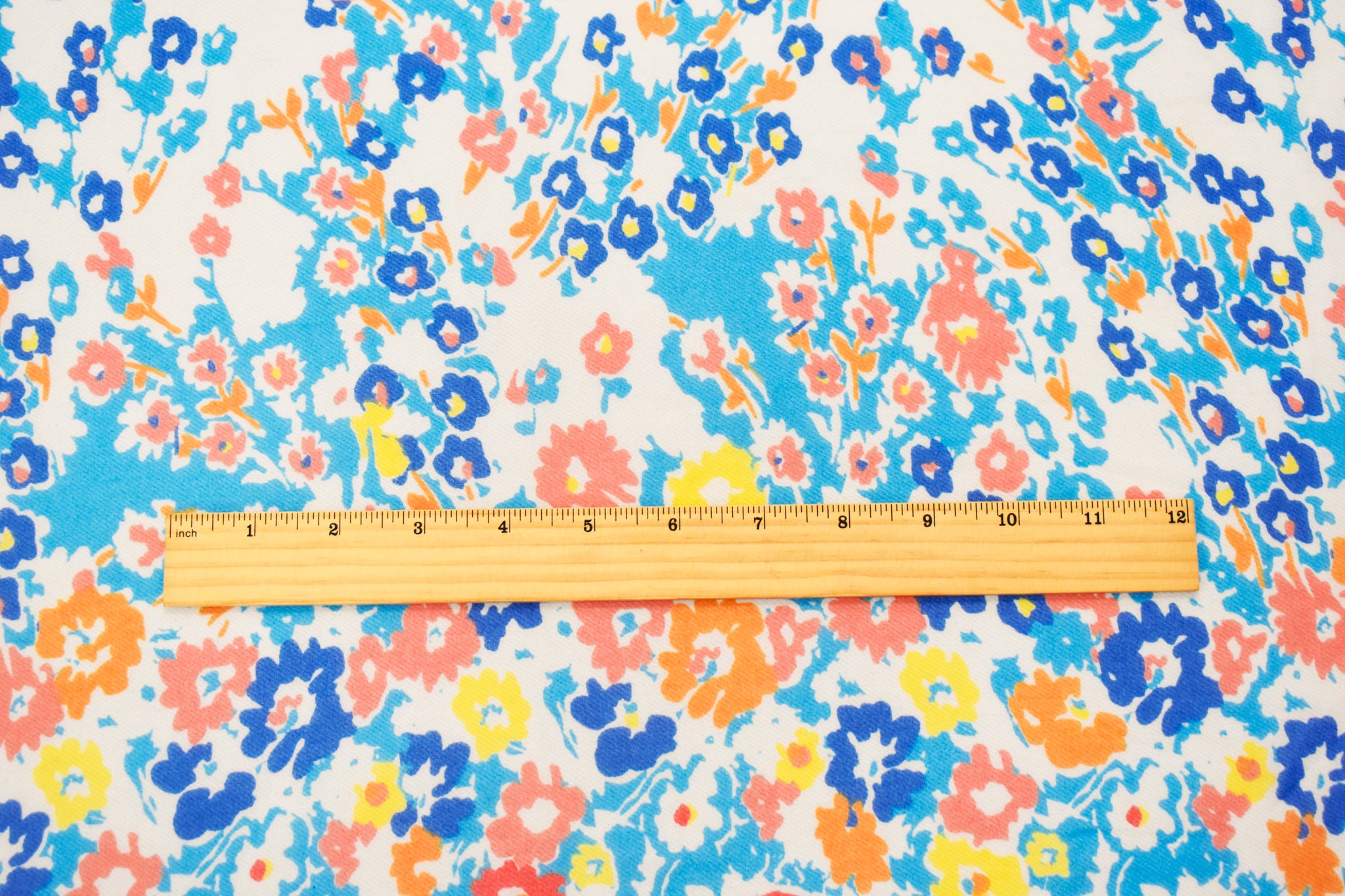 Aqua Blue-Orange-Multi Poly Floral Printed Chiffon Woven Fabric