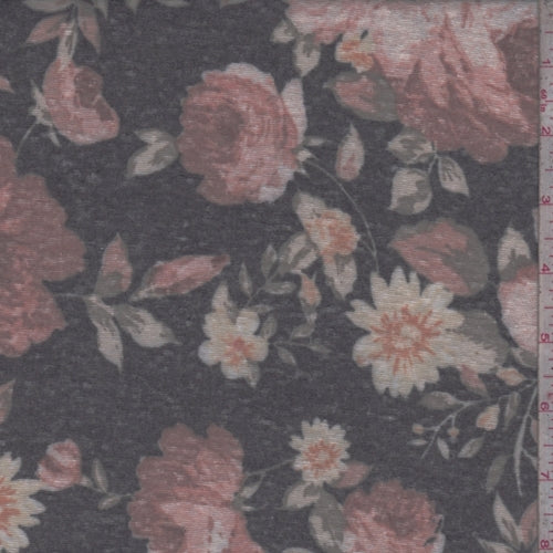 -Printed polyester and rayon blend jersey knit with slubbed yarns