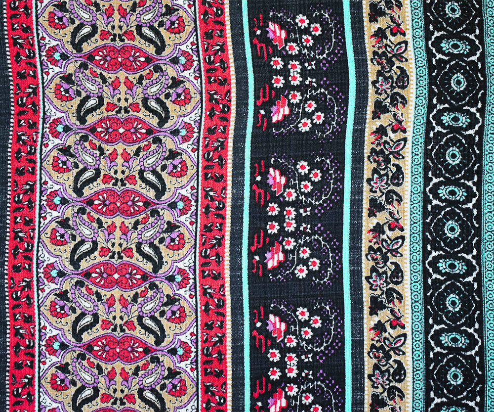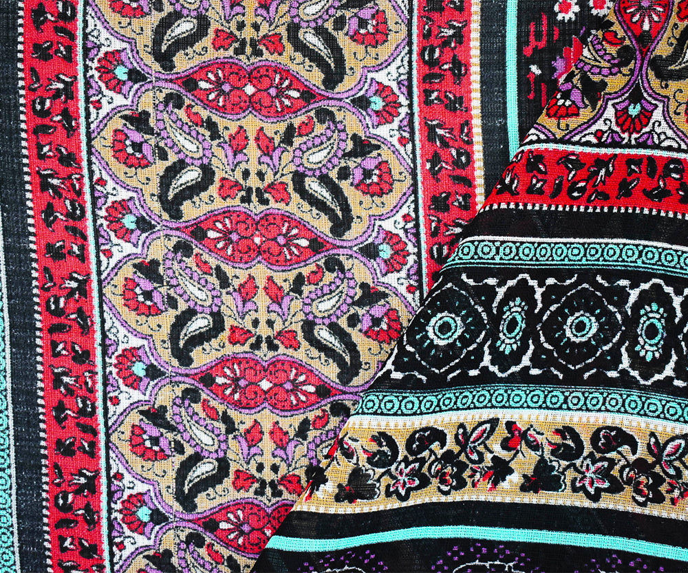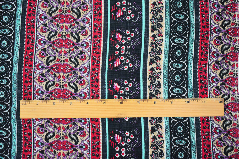 Black-Red-Multi Nylon Striped Floral Baroque Printed Sheer Woven Fabric