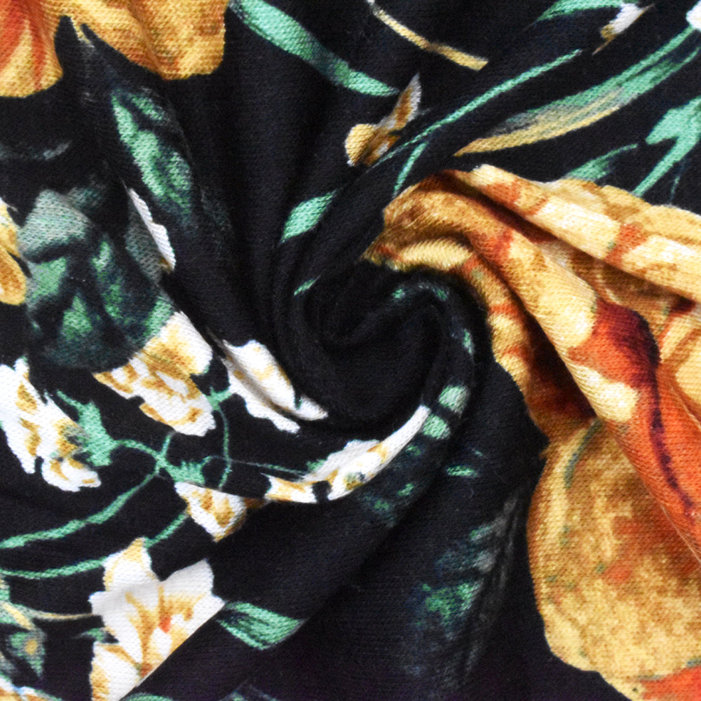 Black-Sky Blue-Multi Floral Printed Rayon Stretch Jersey Knit Fabric