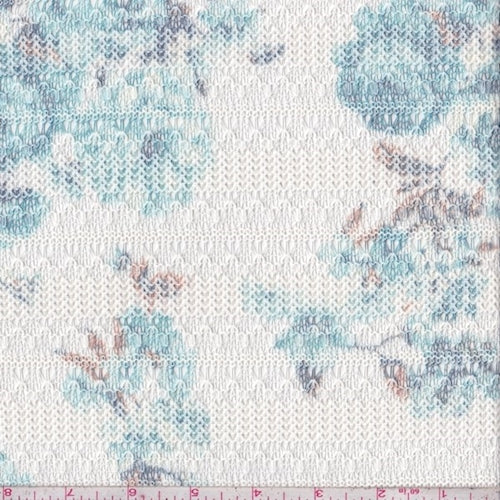 Ivory/Turquoise Floral Pointelle Knit Fabric