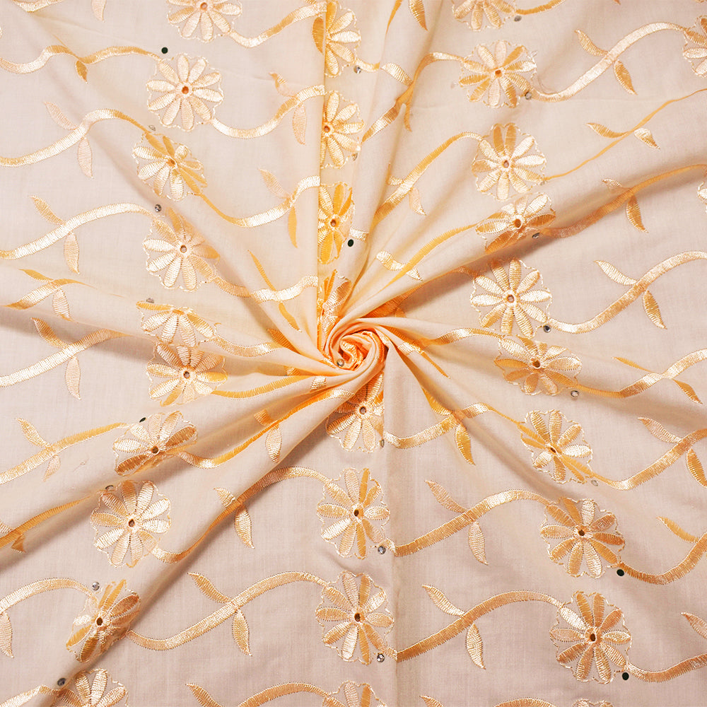 Light Beige Poly-Cotton Embroidered Scallop Rhinestone Woven Fabric