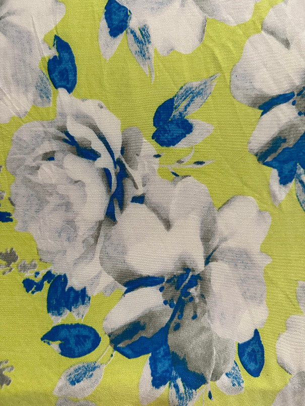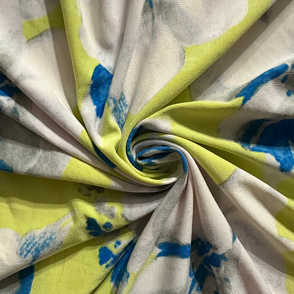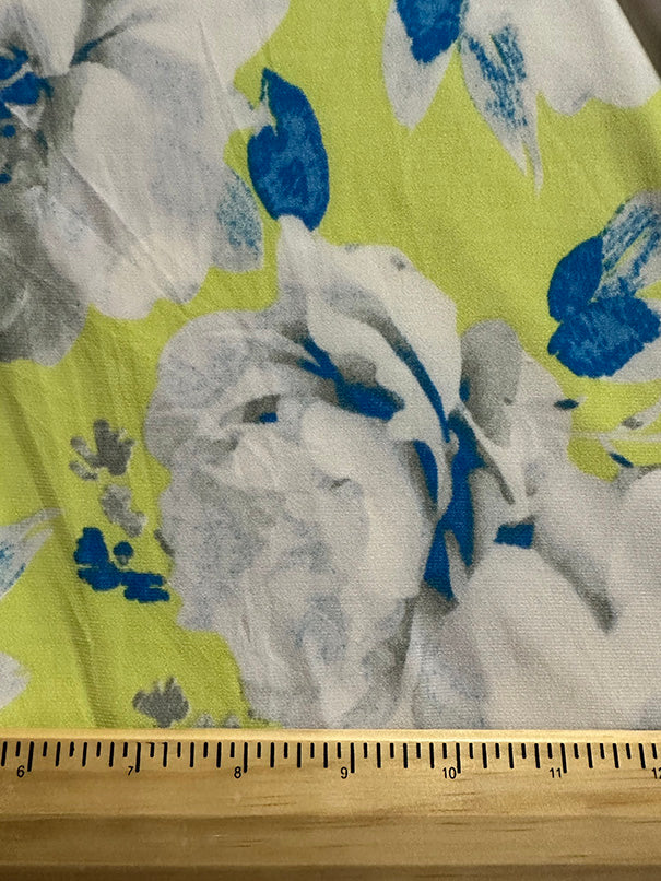 -Blue, Gray, & White Floral Print on Neon Yellow ITY Jersey Knit Fabric