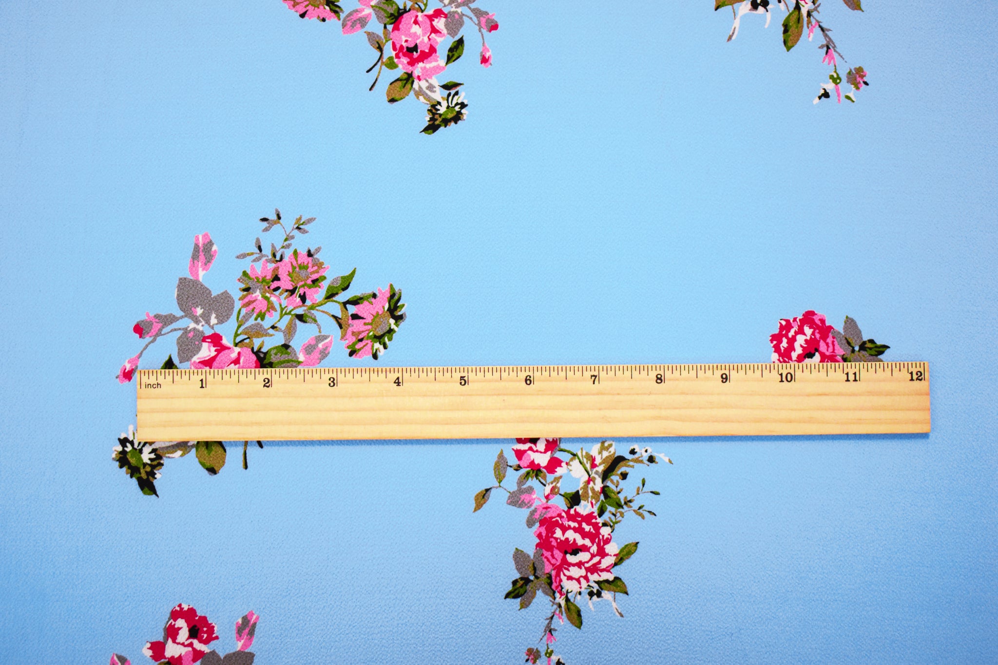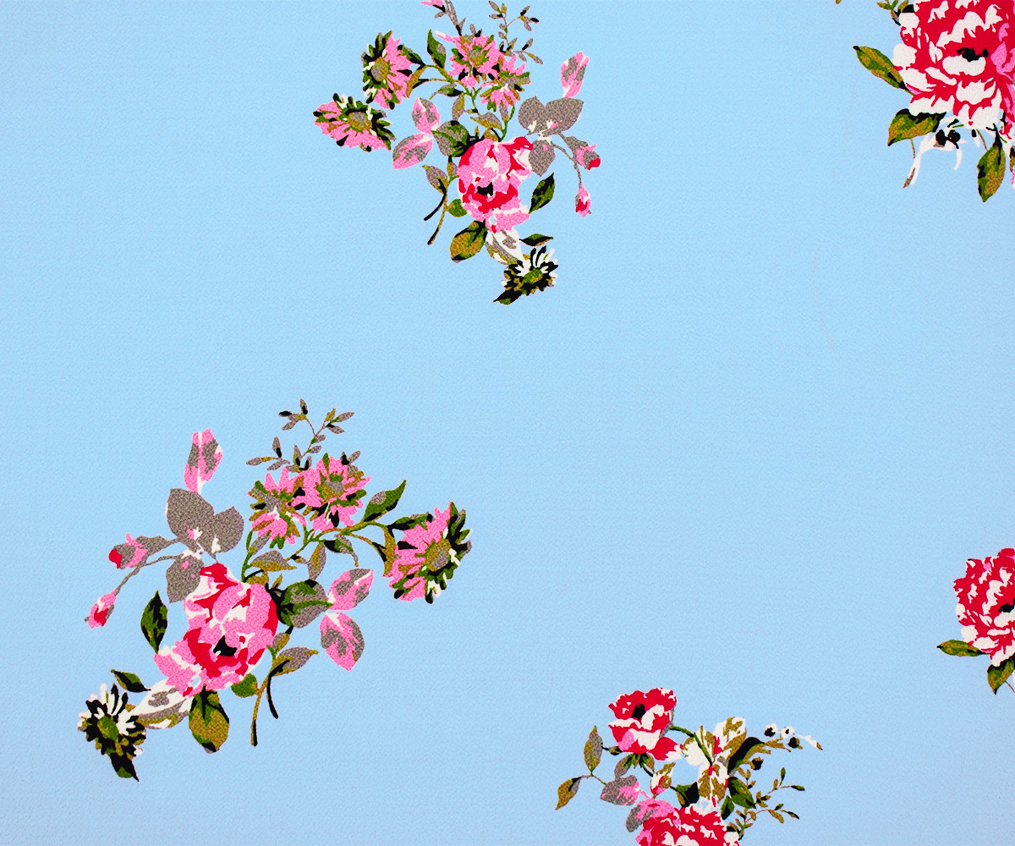 Sky Blue-Pink-Multi Poly Floral Printed Pebble Crepe Woven Fabric