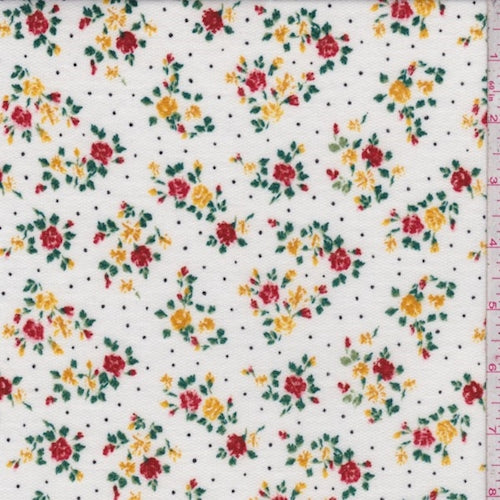 White Mini Floral Pindot Brushed French Terry Knit Fabric