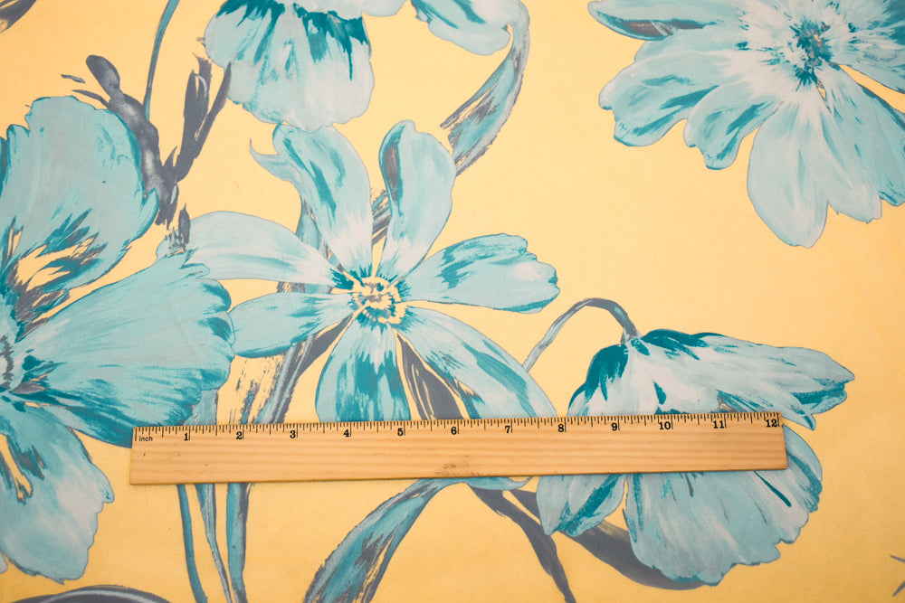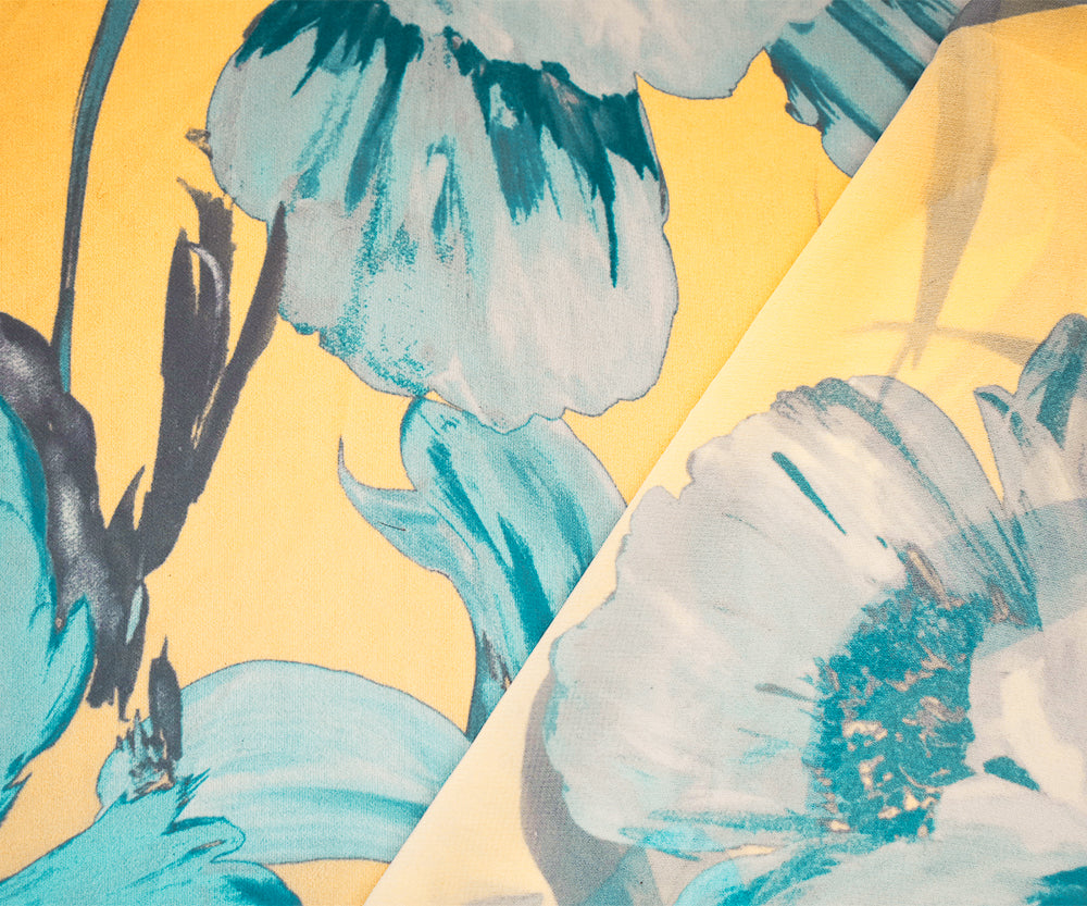 Yellow-Blue-Multi Floral Printed Poly Chiffon Woven Fabric