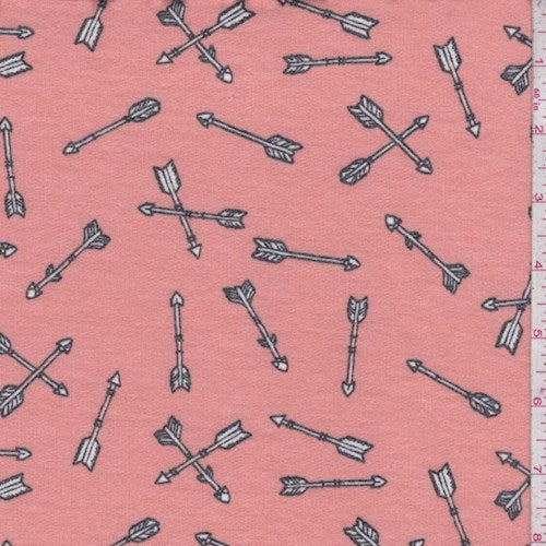 Dusty Peach Arrow Brushed French Terry Knit Fabric