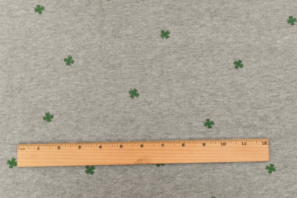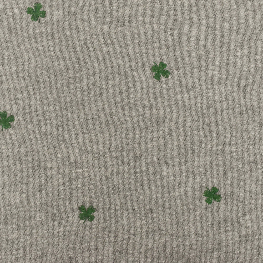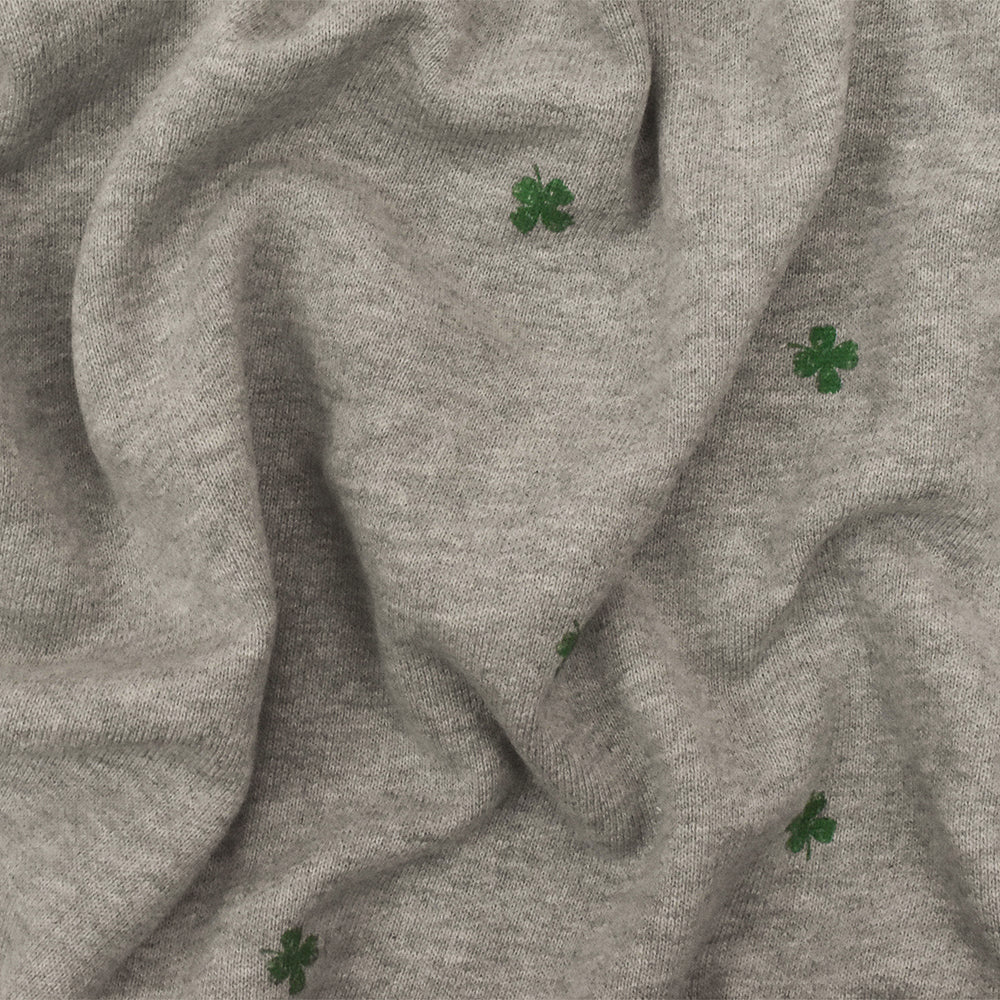 Static Gray-Green Mini Clover Printed Cotton French Terry Knit Fabric