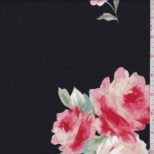 Black/Beige Floral Bloom Crepe Gabardine Fabric