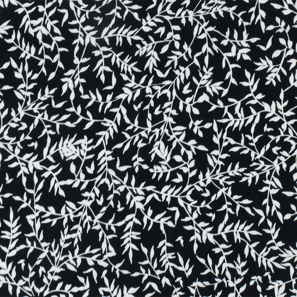 Black-White Famous Designer Leaves Printed Viscose Textured Gauze Fabric