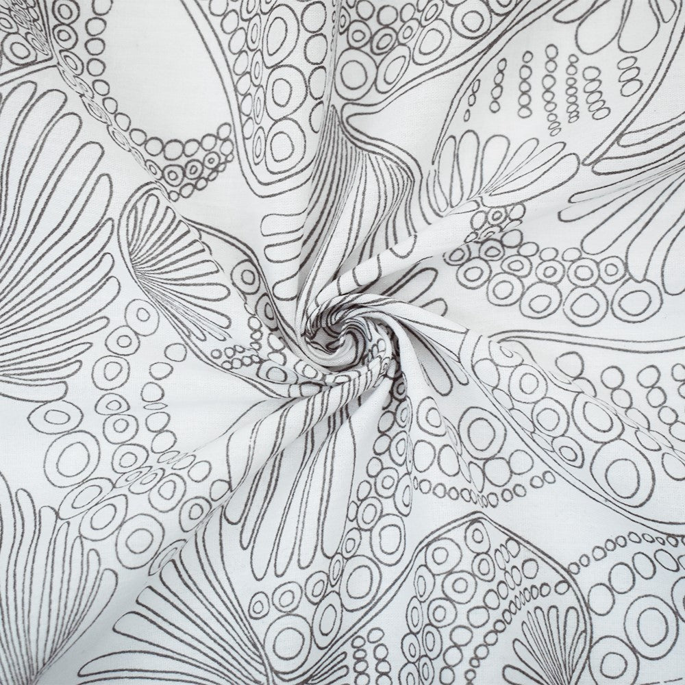 Gray-White Cotton Abstract Fish Printed Gauze Woven Fabric