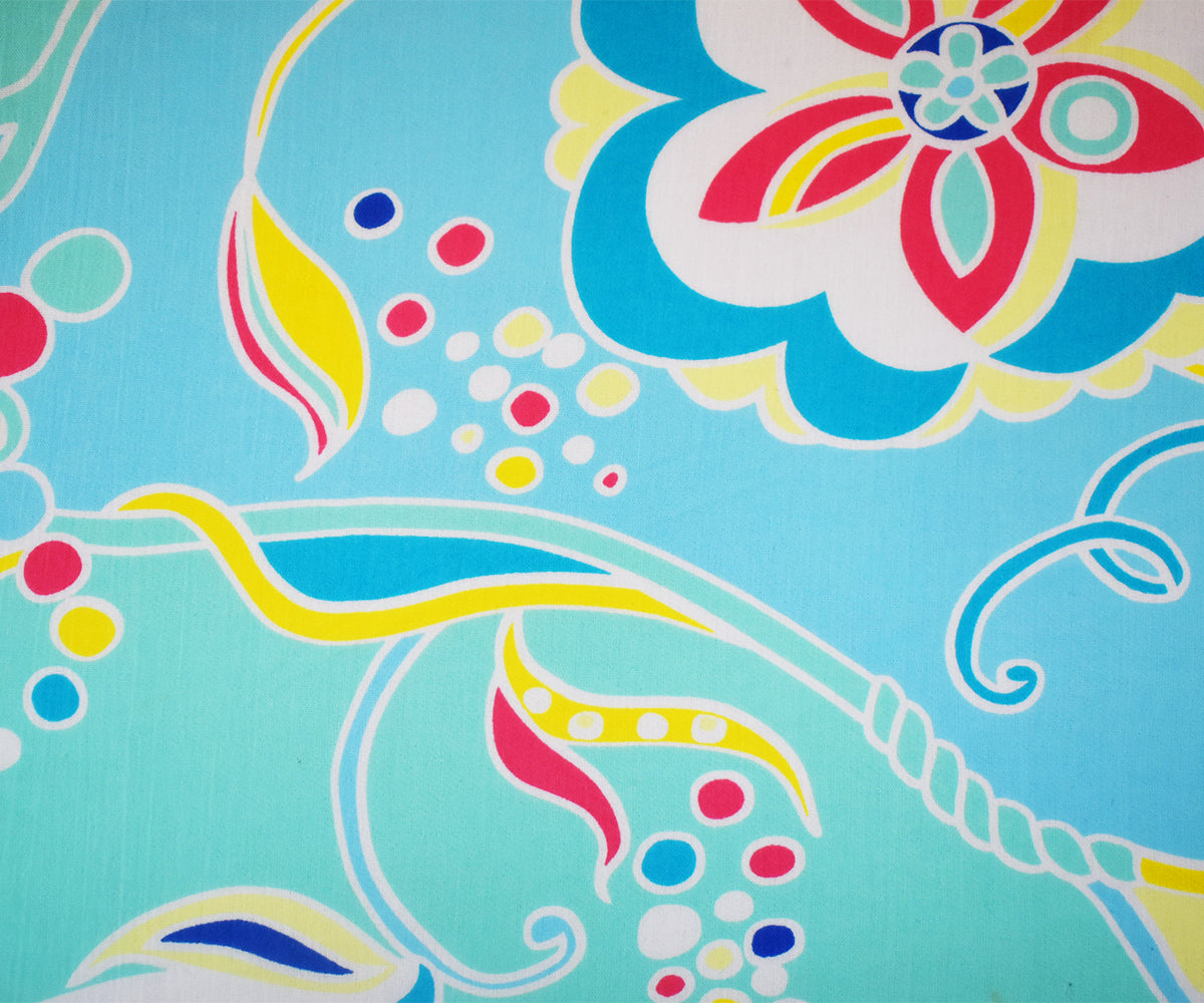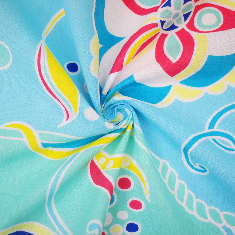 Green-Teal-Multi Cotton Floral Printed Crinkled Gauze Woven Fabric