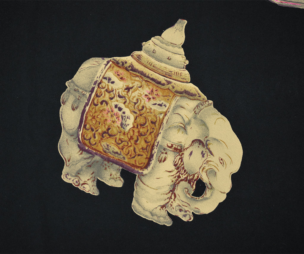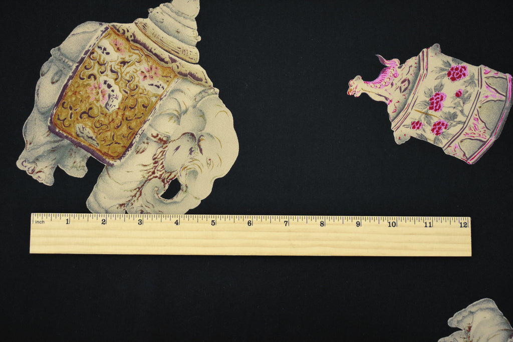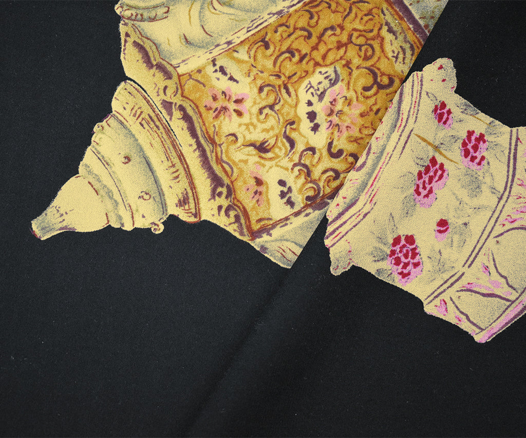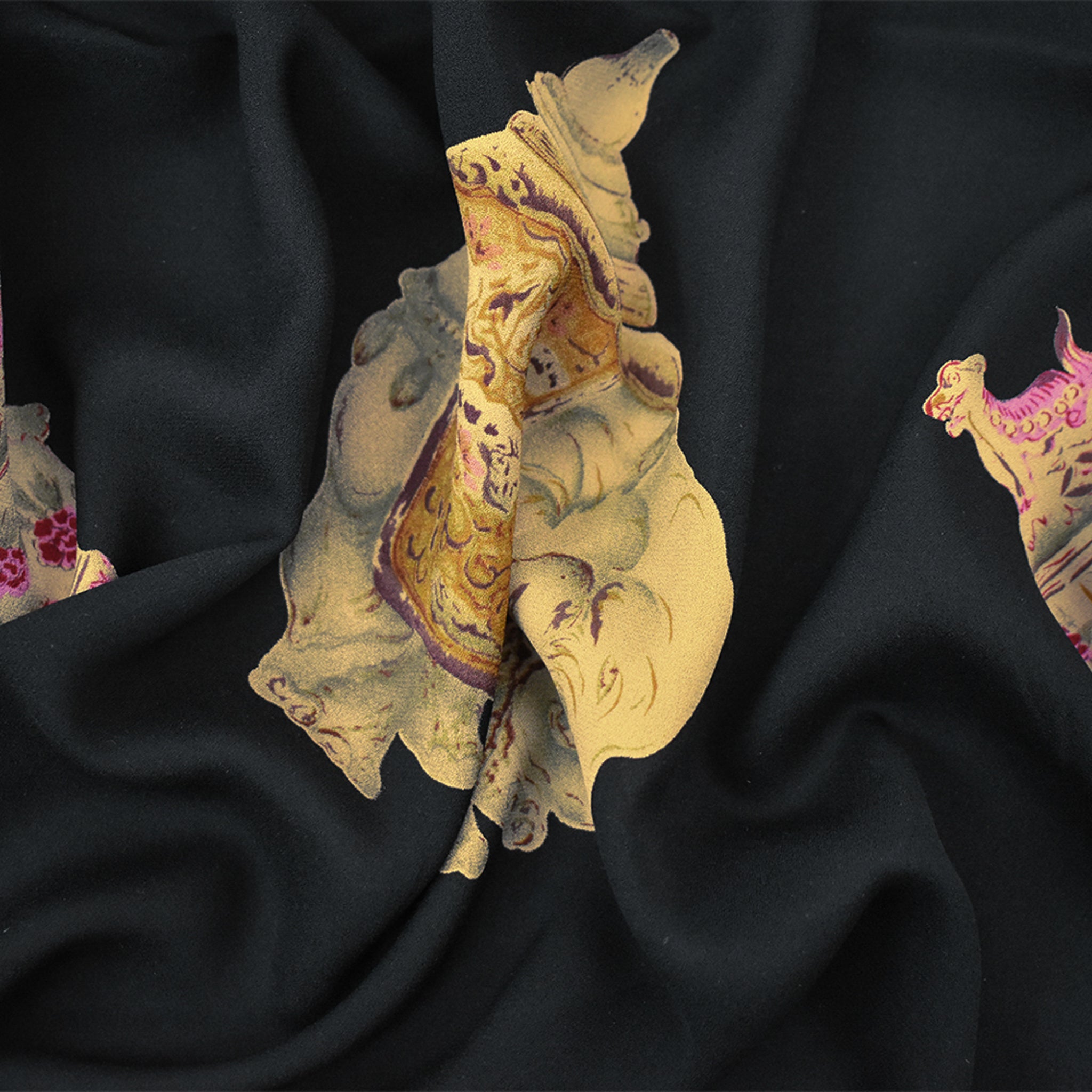 Black-Beige-Multi Silk Ceramic Printed Georgette Woven Fabric