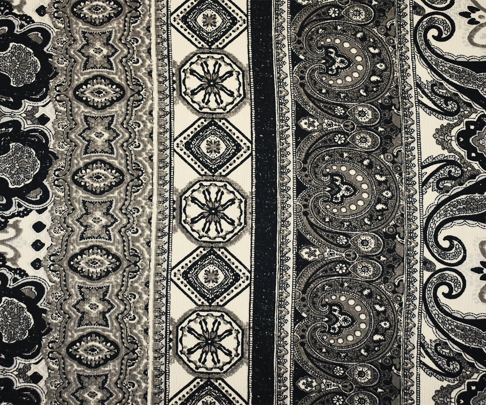 Black-Gray-Multi Poly Paisley Baroque Printed Crepe Georgette Woven Fabric