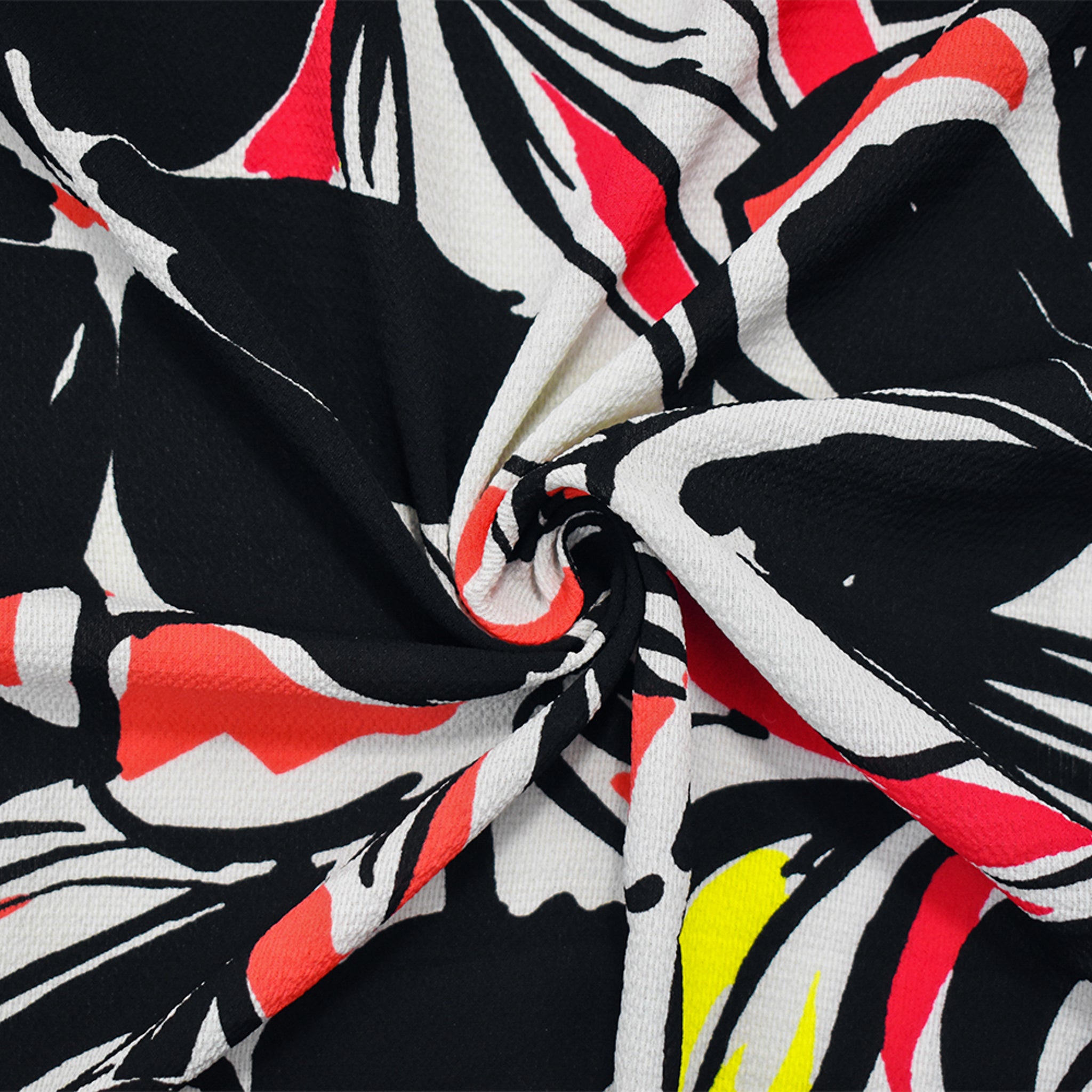 -100% polyester crepe dobby georgette woven fabric printed with an abstract floral pattern