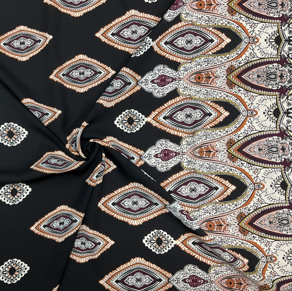 Black-White-Multi Poly Diamond Paisely Border Printed Georgette Woven Fabric