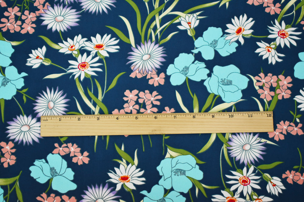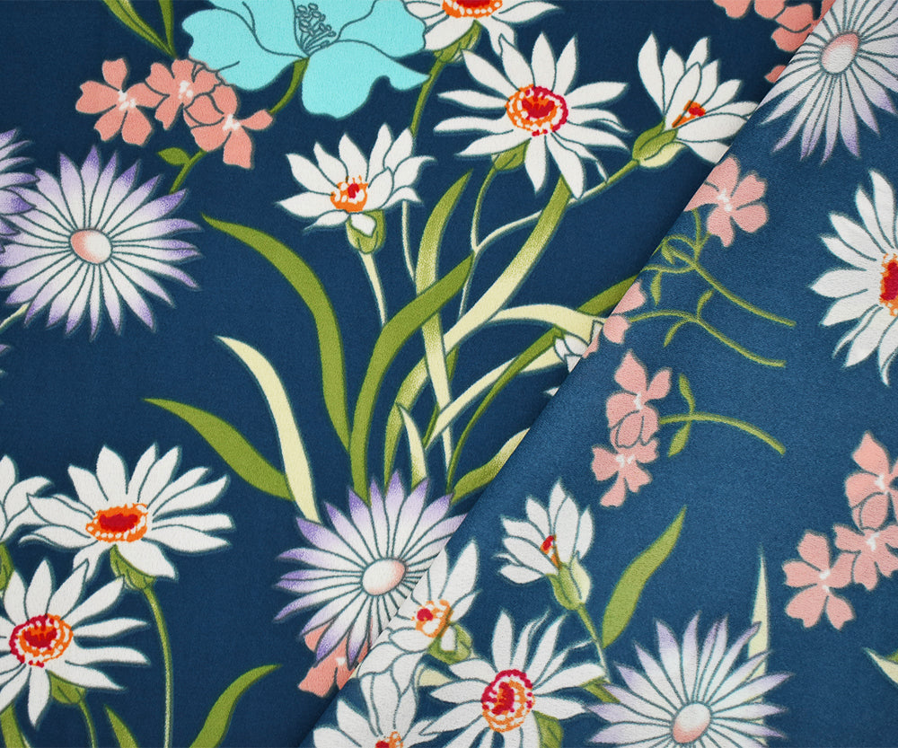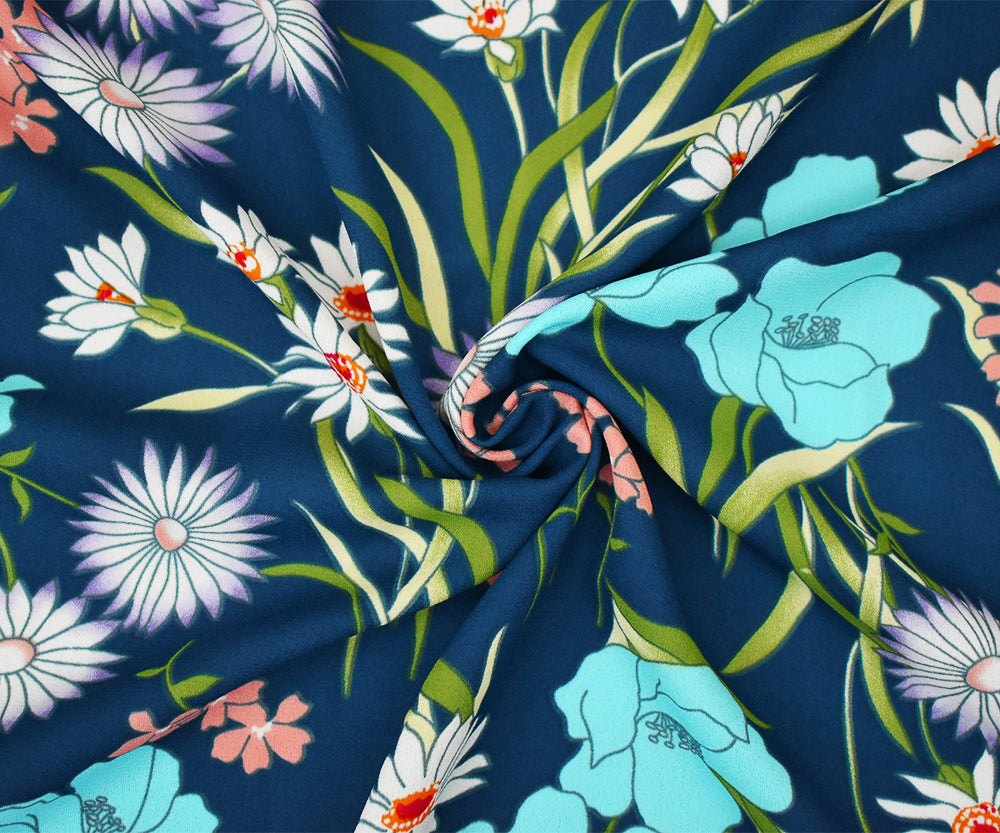 Blue-Pink-Multi Floral Printed Crepe Momie Georgette Woven Fabric