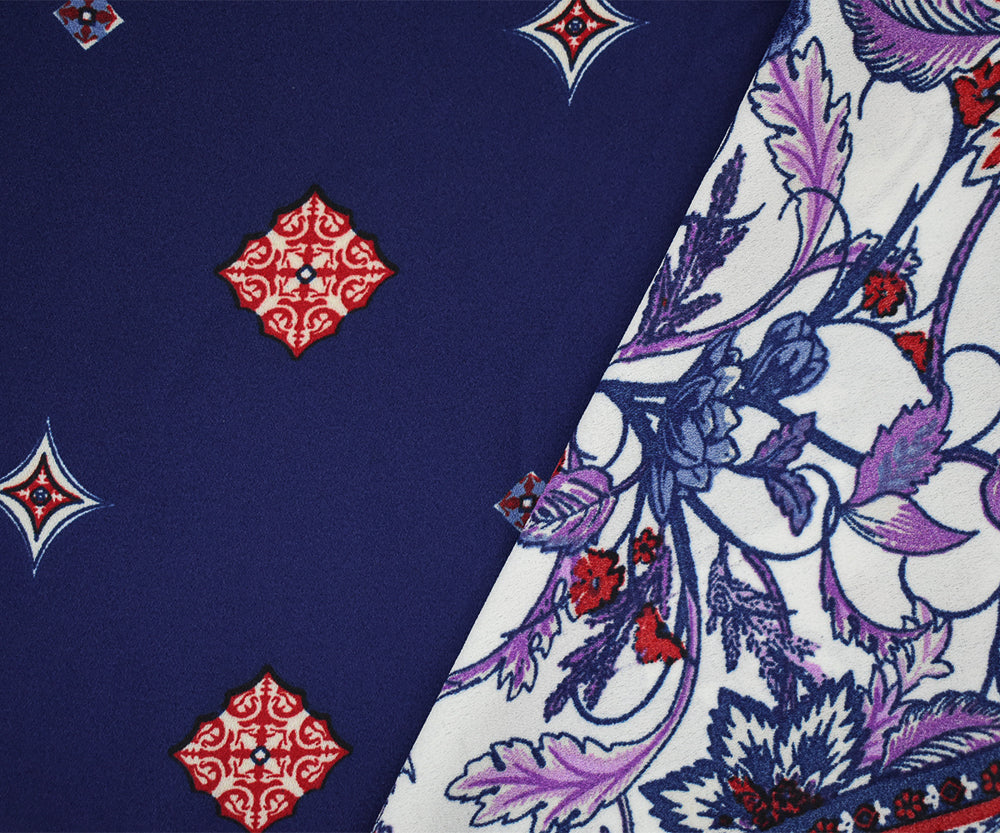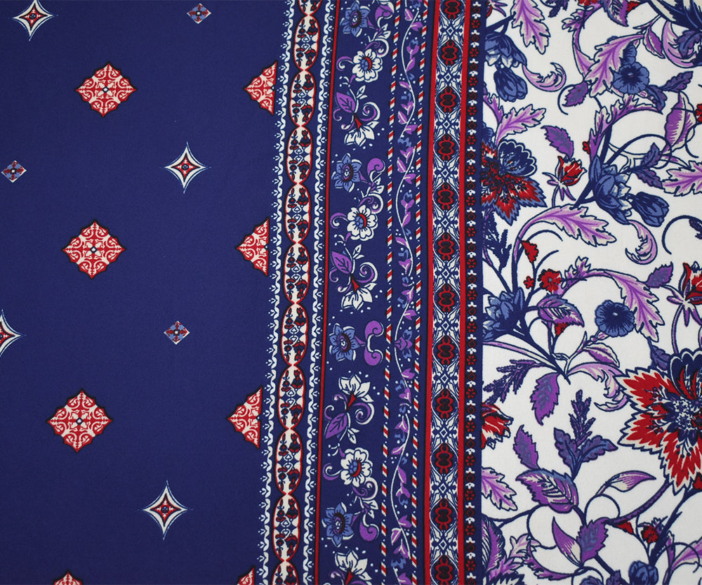 Blue-Red-Multi Floral Border Printed Poly Crepe Momie Georgette Fabric
